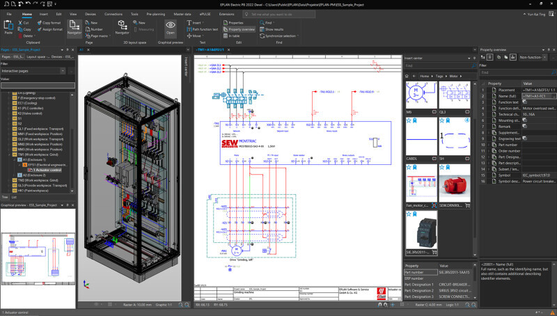 The new Backstage view lets users edit all aspects of an Eplan Project from a central location – for instance opening and creating projects, importing DWG files, and exporting PLC or manufacturing data. A list of the recently used projects provides an excellent overview – as does the logical organisation of all project-related actions. And the newly integrated insertion centre unifies all the functions for inserting symbols, macros and devices, including a graphic preview – everything that is needed for efficiently creating schematics. Frequently used components can be marked as favourites and tagged for individual workflows.
