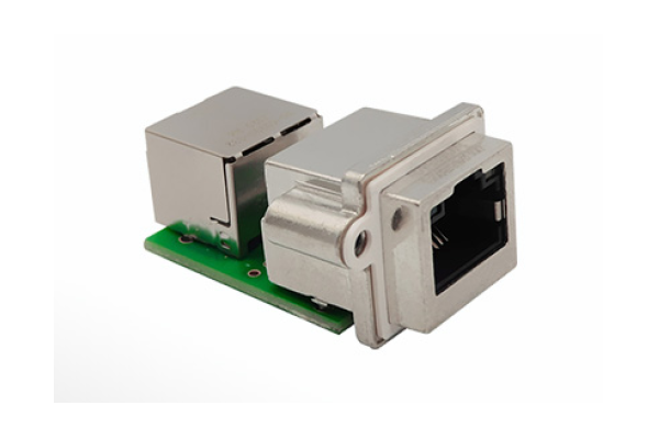Stewart’s SealJack PCB Coupler utilizes a shielded right angle RJ45 SealJack, offering an IP67 rated connection when mounting to a box or panel. The SealJack PCB coupler also provides a standard RJ45 shielded jack for connection inside the panel. This solution brings a shielded Ethernet connection to the device panel by means of industry standard RJ45 patch cords on both sides of the coupler. This coupler design is robust, compact and able to achieve 1 and 2.5 Gigabit Ethernet transmission speeds and features optional use LEDs. The SealJack PCB coupler offers a compact IP67 solution without the need of a cap or cover when not in use, resulting in lower profile connectors on the panel exterior.